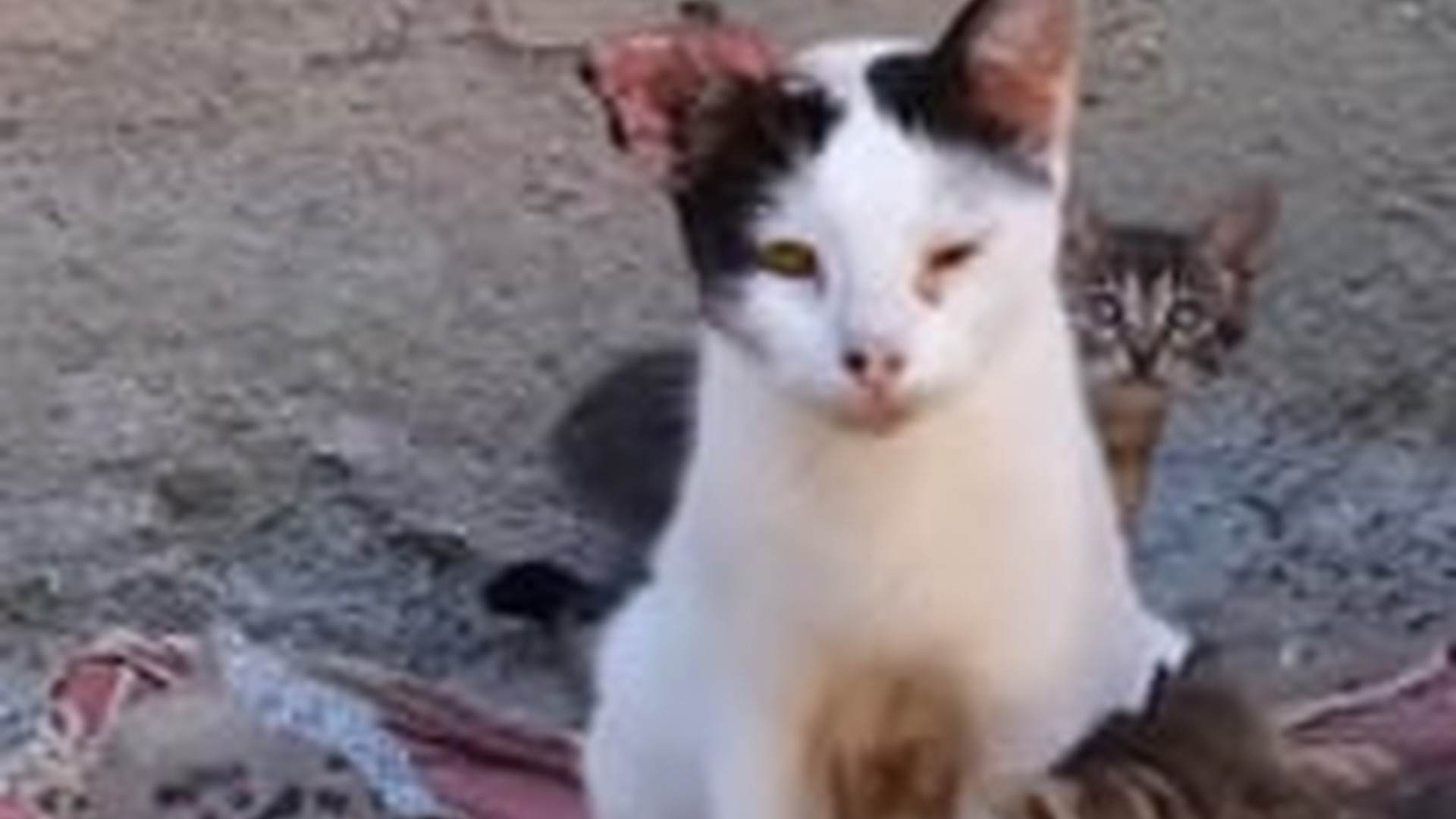 H1404003_Ein Paar half einer Katzenmutter mit Ohrtumoren un
