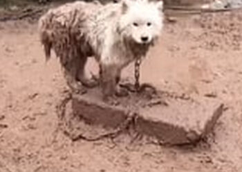 H1304005_�The angelic Samoyed,chained to thorns,finally felt the stride of freedom.✨#shorts #animalrescue